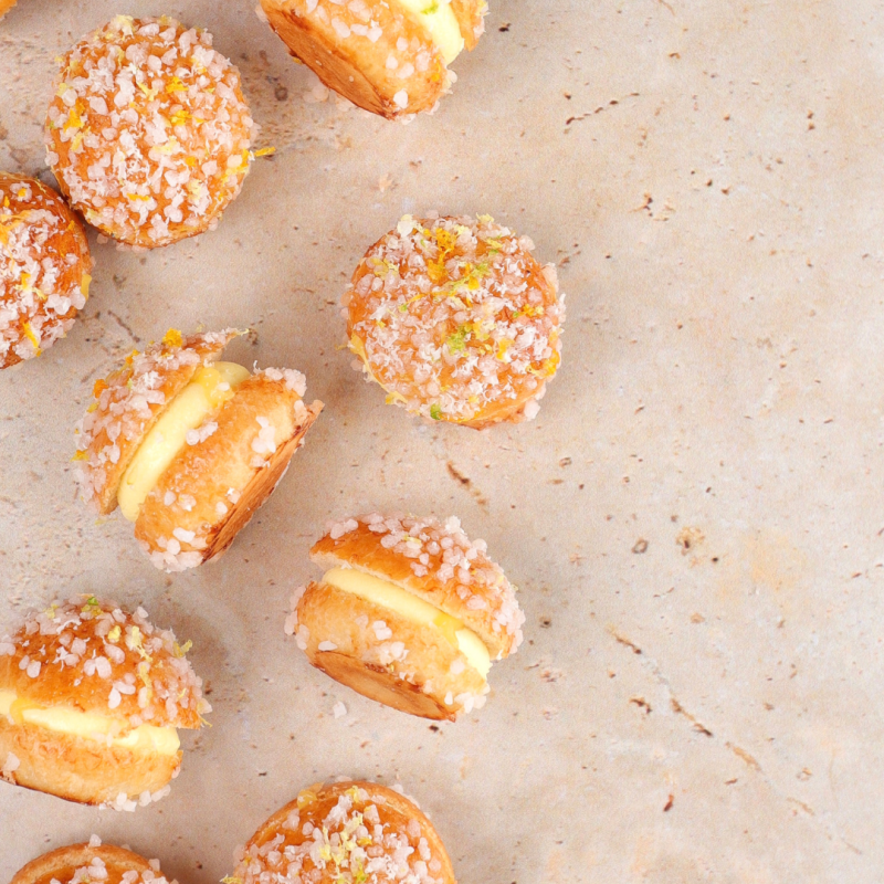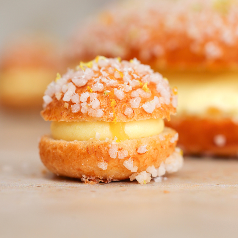 Discover our delicious handcrafted brioches, generously filled with a delightful blend of smooth, creamy fillings and delicately sprinkled with sugar crystals.