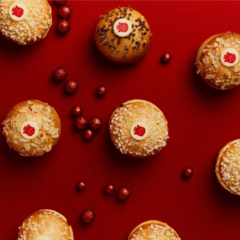 Un assortiment gourmand et festif avec nos 4 mini Tropézienne Festives Noël 2025 : le caractère raffiné de la noisette & baie de Timut, l’intensité du citron de Menton IGP & fruits de la passion, la douceur des fruits des bois, la gourmandise du chocolat noir & caramel fleur de sel.