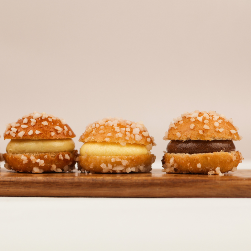 Une délicieuse petite brioche, généreusement garnie d’un savoureux mélange de deux crèmes onctueuses et saupoudrée de grains de sucre. Le coffret mix met à l’honneur la Baby Trop’ Originale et des parfums hivernaux gourmands.