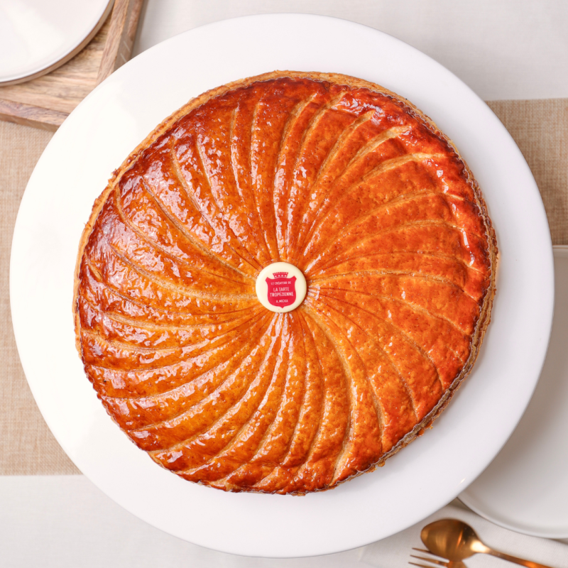 Notre galette des rois est composée d'une pâte feuilletée dorée et croustillante, généreusement garnie d'une délicate crème d'amande et est nappée d'un sirop qui apporte une touche de brillance et de gourmandise.