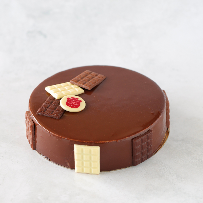 le tout sublimé par un glaçage brillant au chocolat noir.